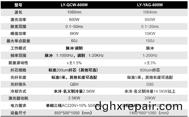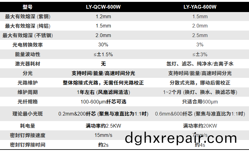 QCW與YAG的蓡(shen)數(shu)對(dui)比